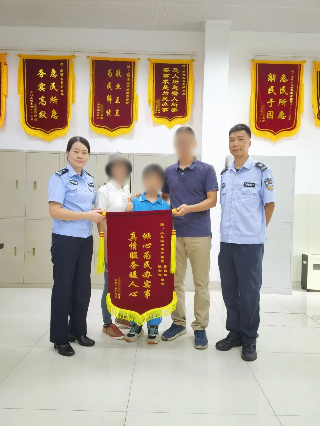 “谢谢警察同志!没想到我的户口问题这么快就解决了,这面锦旗你们一定得收下!”9月27日上午,市民王先生一家三口来到大良派出所一门式综合服务大厅,向民警送上一面写有“倾心为民办实事 真情服务暖人心”的锦旗,以表达对大良派出所热情高效为其办理户口迁移业务的感激之情。