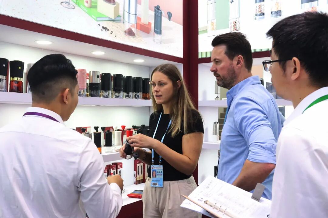 而作为广交会的“常驻选手”,珠海市科力通电器有限公司也拿出满腔诚意,带来多款全新升级的拳头产品,主要展示了新款电动红酒开瓶器套装、新款底座充电款电动胡椒研磨器、电动开罐器、电动奶泡器等智能小家电。其中,升级后的电动胡椒研磨器通过重力感应功能,让使用者一只手就能完成胡椒研磨。