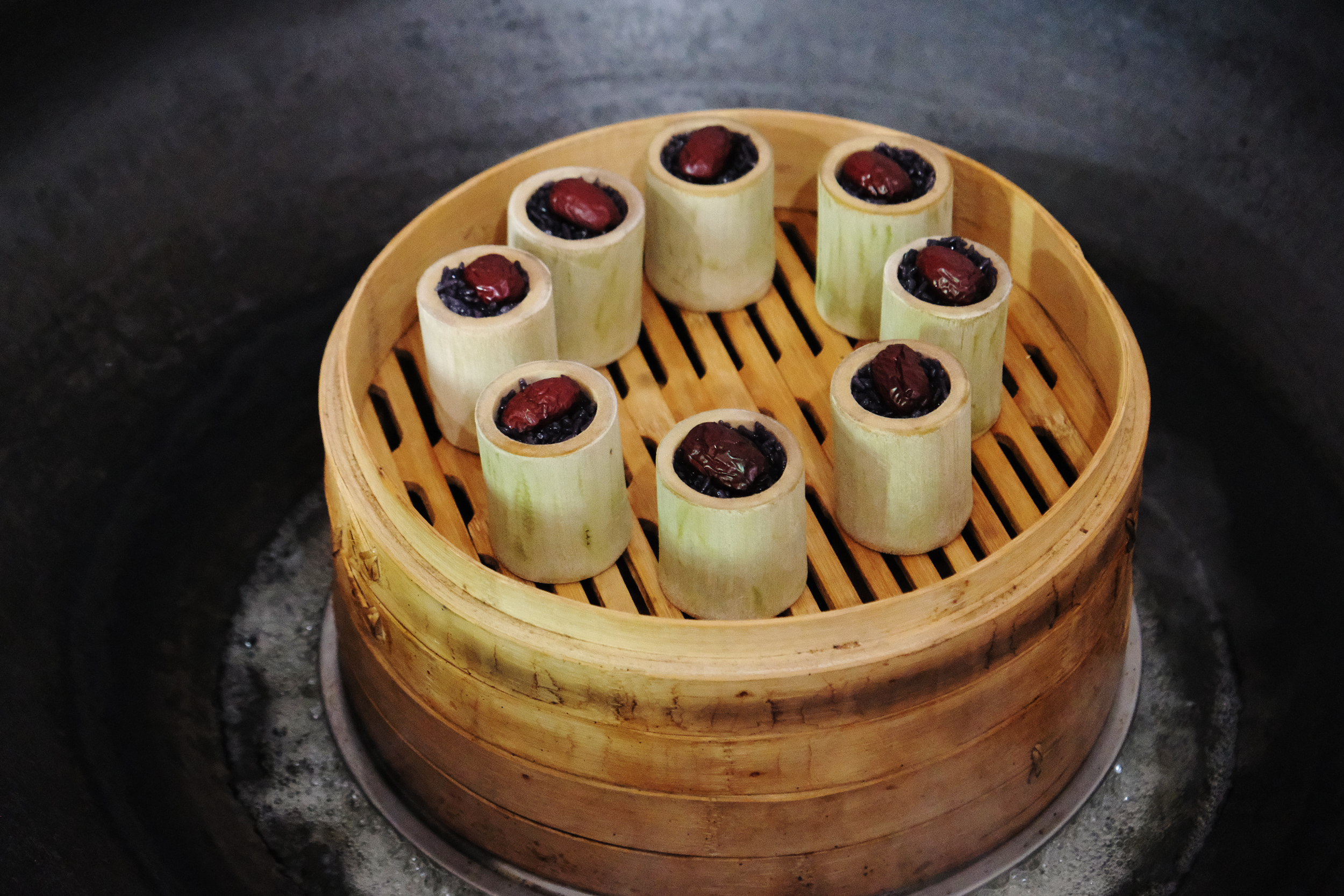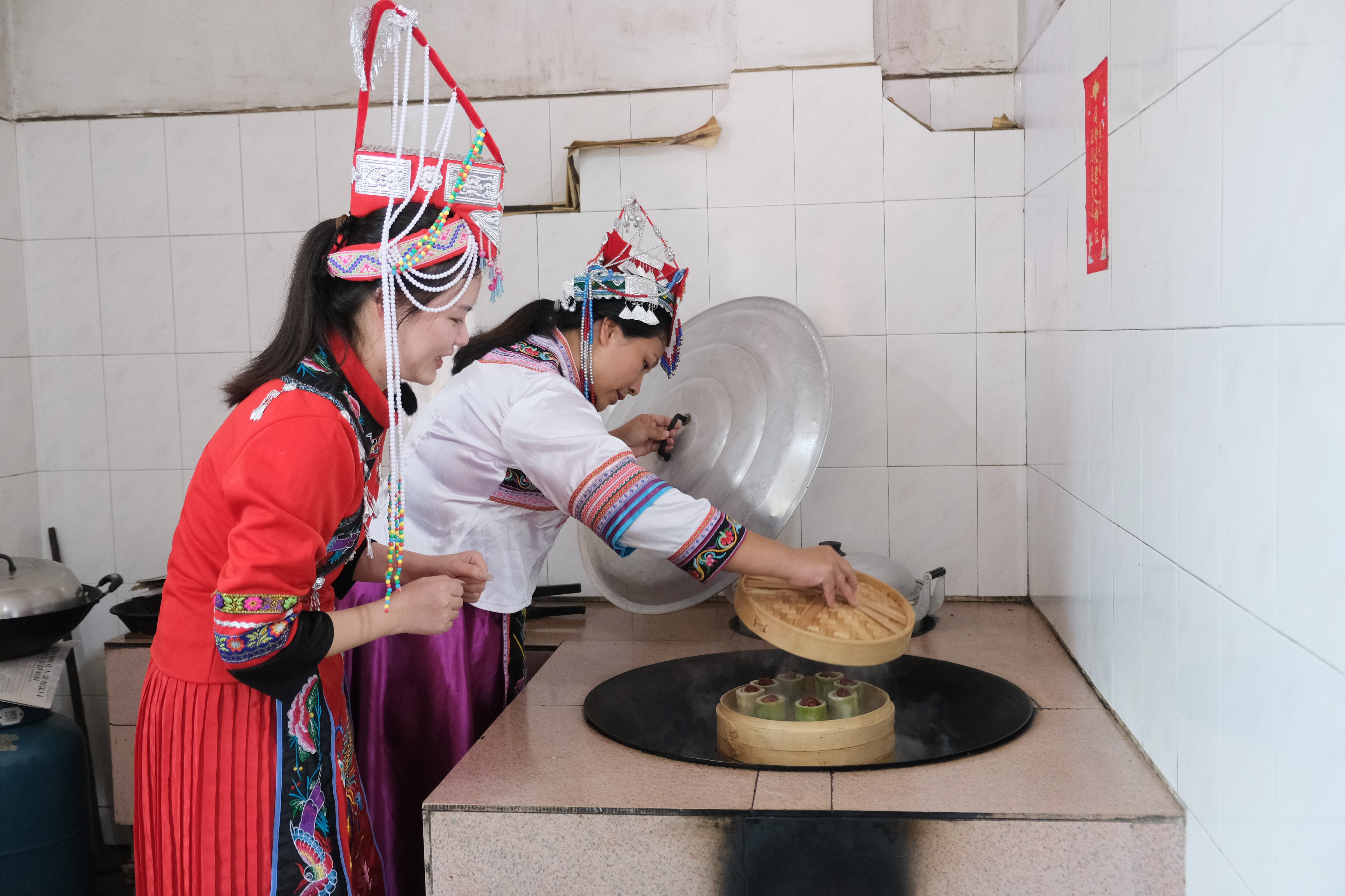 最后用柴火土灶蒸煮
