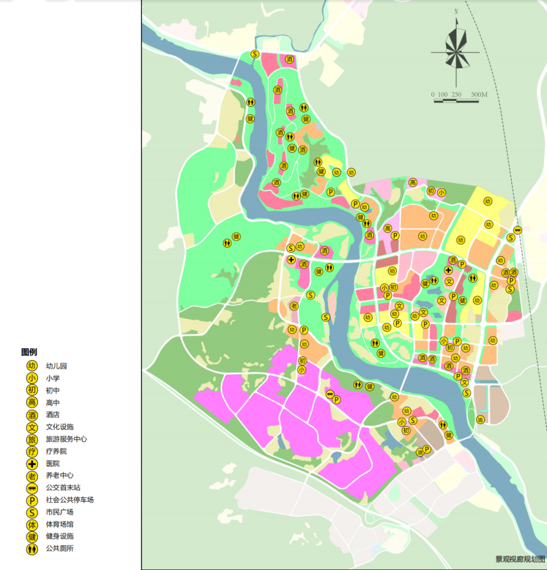 医疗设施方面,结合人口分布在沿江两岸各布置一处医疗卫生用地。其中西岸的医疗设施将以康养为主题,是康养医疗旅游组团的重要组成部分。