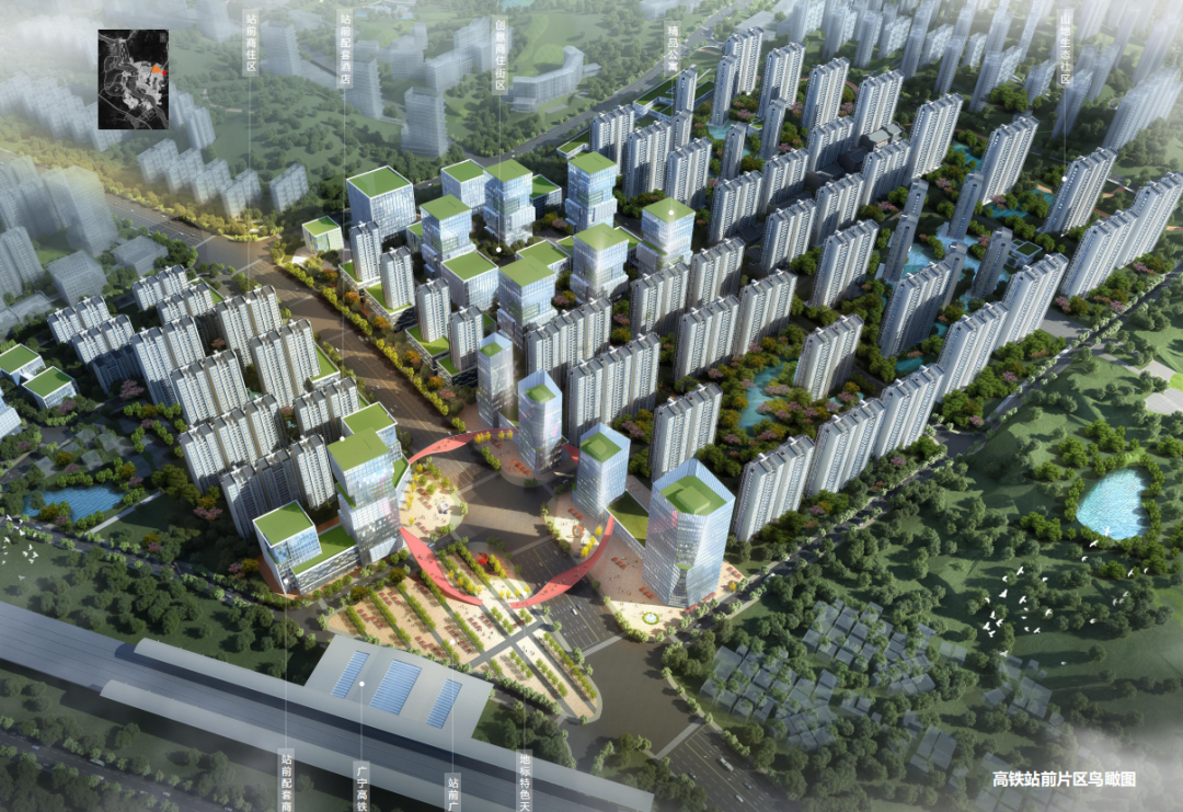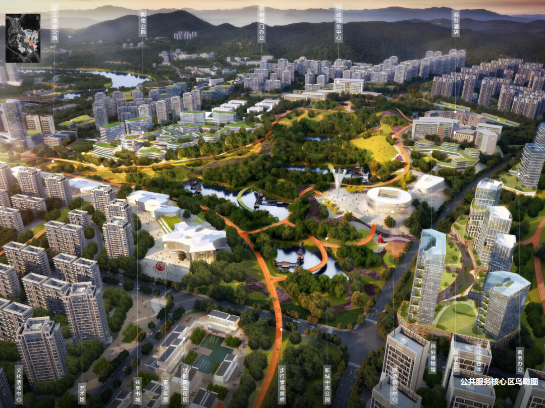 一核——位于高铁站前地区,以新城中央公园为景观中心向外延伸扩展,汇聚公共服务、旅游服务、新型产业、商住社区等混合功能,合力打造驱动生态新城的发展引擎“公共服务核心”;