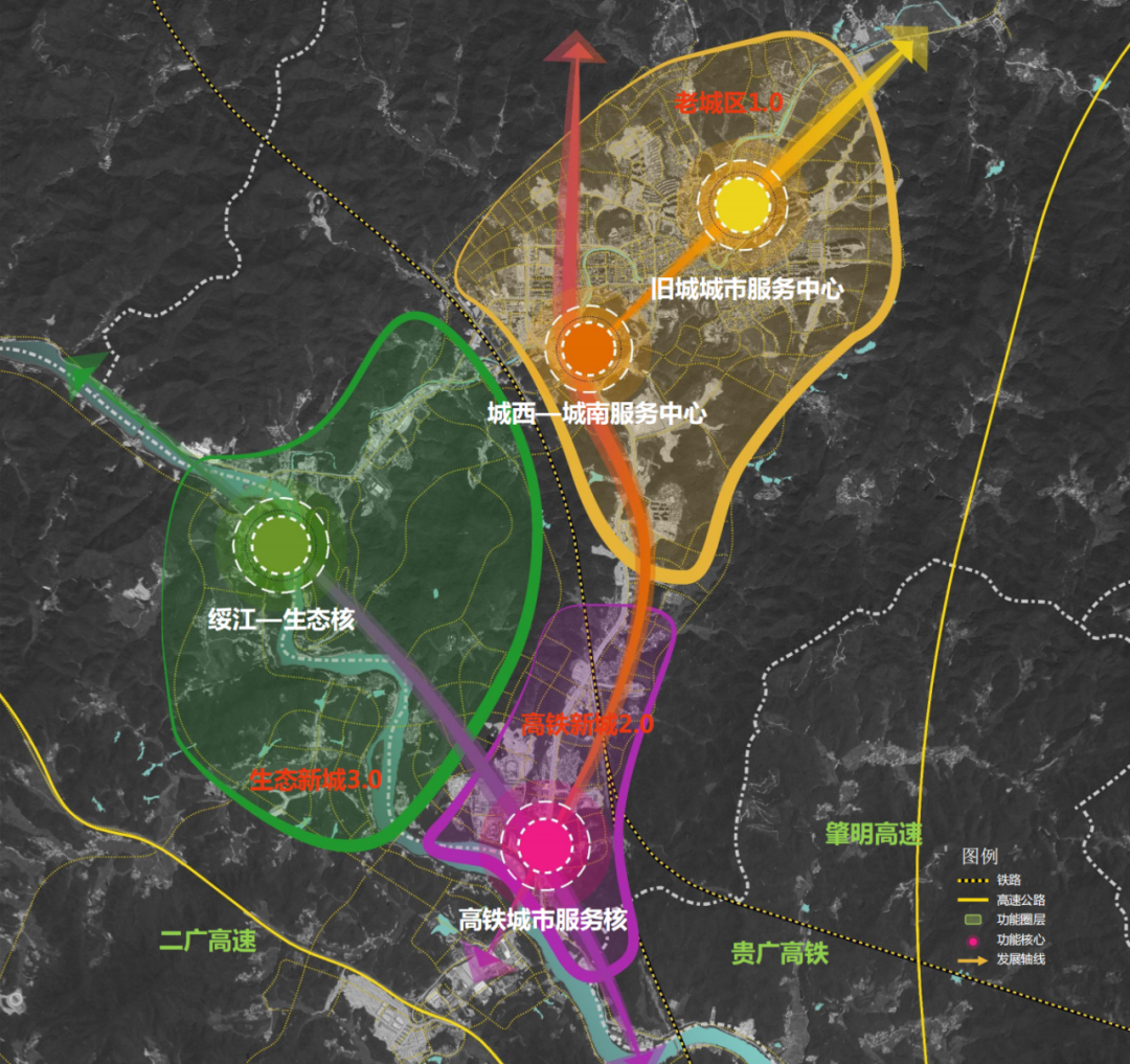 结合绥江沿岸区域建设用地的逐步腾挪释放,绥江“生态新城”围绕一江两岸打造广宁金脊,形成一系列沿江功能组团。广宁城市将探索从老县城的1.0跨越高铁新城的2.0,迈向拥江发展的生态新城3.0建设样本。