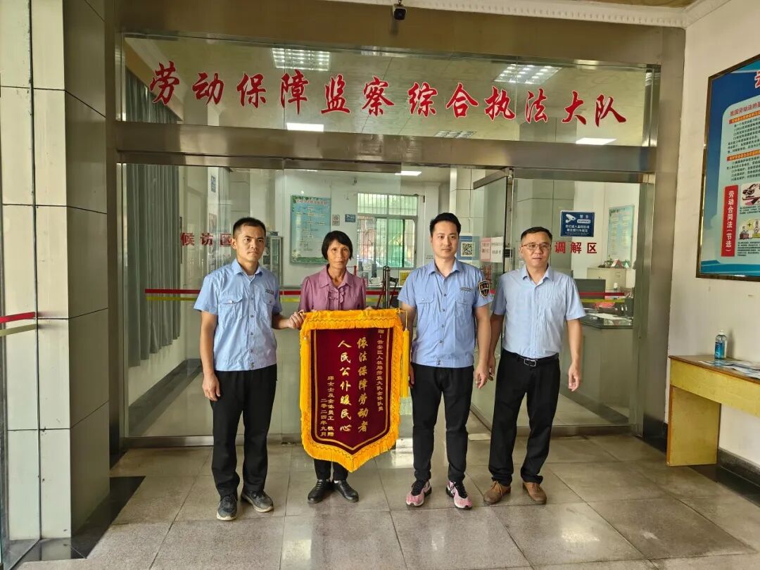 “谢谢你们!真的没想到拖欠我们近两年的血汗钱终于被你们追回来了。”10月8日,农民工代表将“依法保障劳动者,人民公仆暖民心”的锦旗送到云浮市云安区人社局劳动监察执法大队,感谢人社部门为他们主持了公道,维护他们的合法权益。