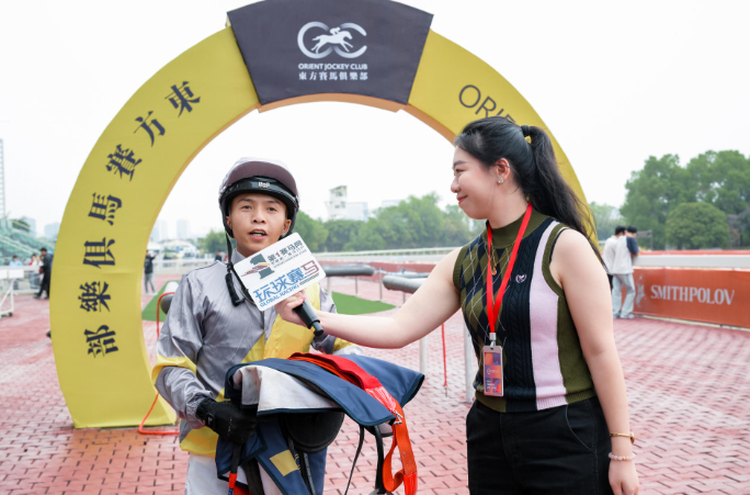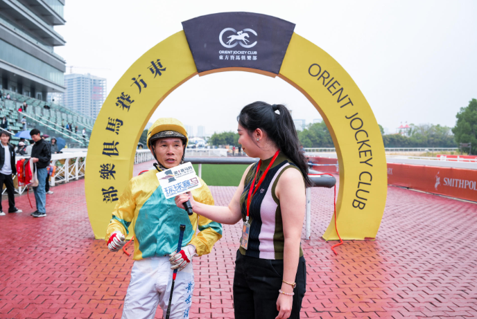 图:骑师黄世浩在赛后接受第一赛马网访问