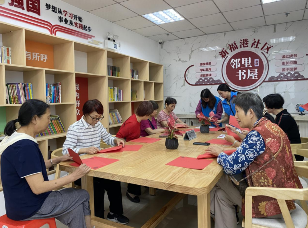 揭牌当天正值传统节日重阳节,社区在书屋的功能室组织了剪纸艺术活动。小区居民纷纷前来参与,并顺带参观新落成的书屋,现场还有热心居民捐赠书籍。