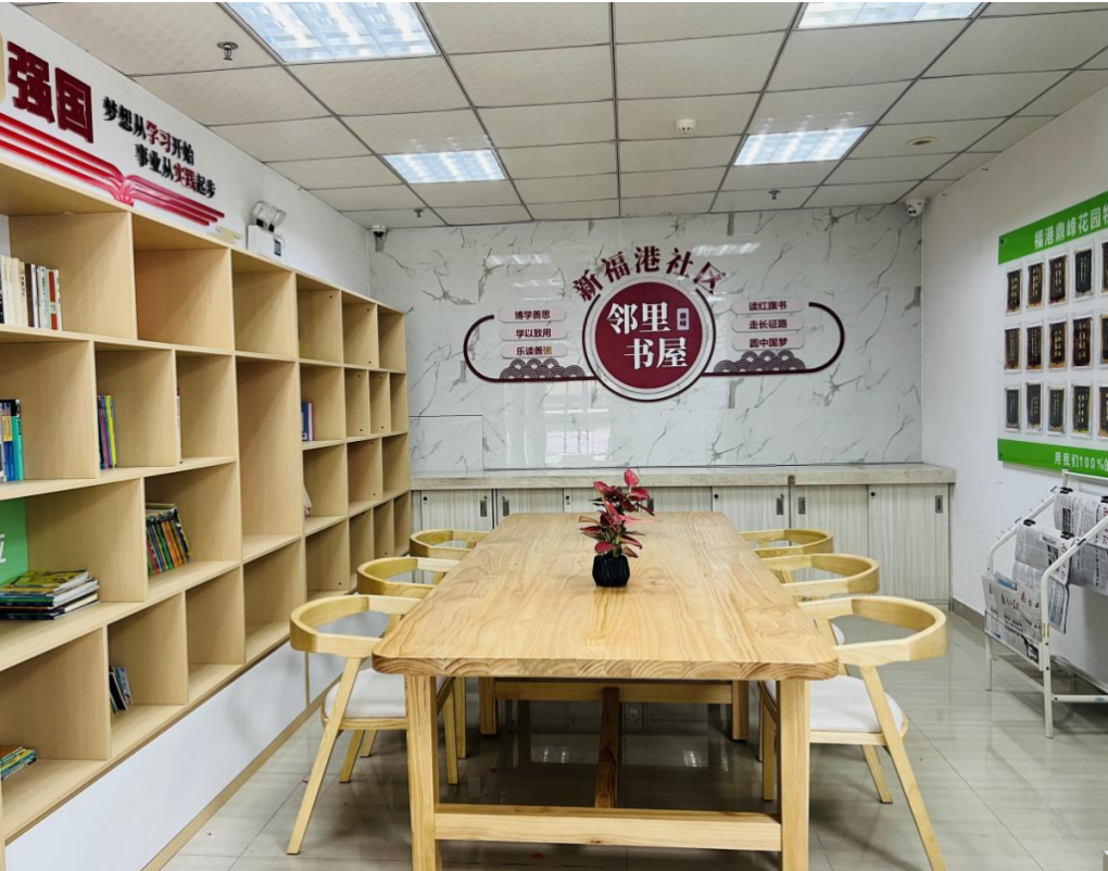 在揭牌仪式上,萝岗街道党工委副书记表示,“‘新福港邻里书屋’的开设,让居民借阅书籍、分享交流更加方便了,希望居民能够充分利用这一平台,积极参与社区文化活动,共同营造和谐、文明、健康的社区氛围。”