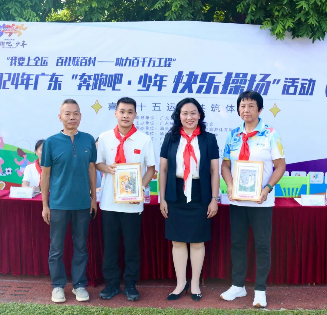 值得一提的是,在汕头站活动举行前,“我要上全运 百社联百村——助力‘百千万工程’”2024年广东“奔跑吧·少年 快乐操场”连州站和阳山站的活动分别于16日和17日在连州市九陂镇联一小学、清远阳山县阳山中学举行,均设置了冠军课堂和体质健康检测,并捐赠了智能跳绳。