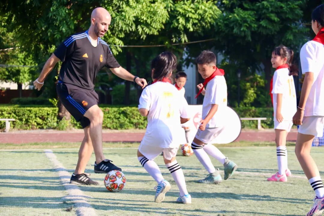 最后举行的冠军课堂很有亮点,请来了皇马的足球先生,欧足联职业级教练员哈梅·胡安那斯为学生带来足球公益课堂。胡安那斯是皇家马德里基金会中国训练营华东地区主教练,曾获西班牙丙级联赛年度最佳教练员,丰富的执教经验涵盖了从足球启蒙阶段到职业水平的球员,作为基金会教练员及球员培训的主讲师之一,其主讲的训练营线上培训课程惠及多个省市的校园足球基层教练员和老师。