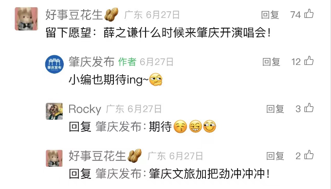 希望薛之谦等明星能来肇庆演出