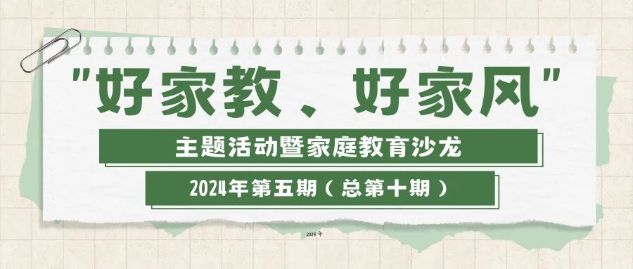 为持续推进《中华人民共和国家庭教育促进法》贯彻落实,推动社会主义核心价值观在广大家庭生根发芽,拟开展“好家教、好家风”主题活动暨家庭教育沙龙2024年第五期(总第十期)。