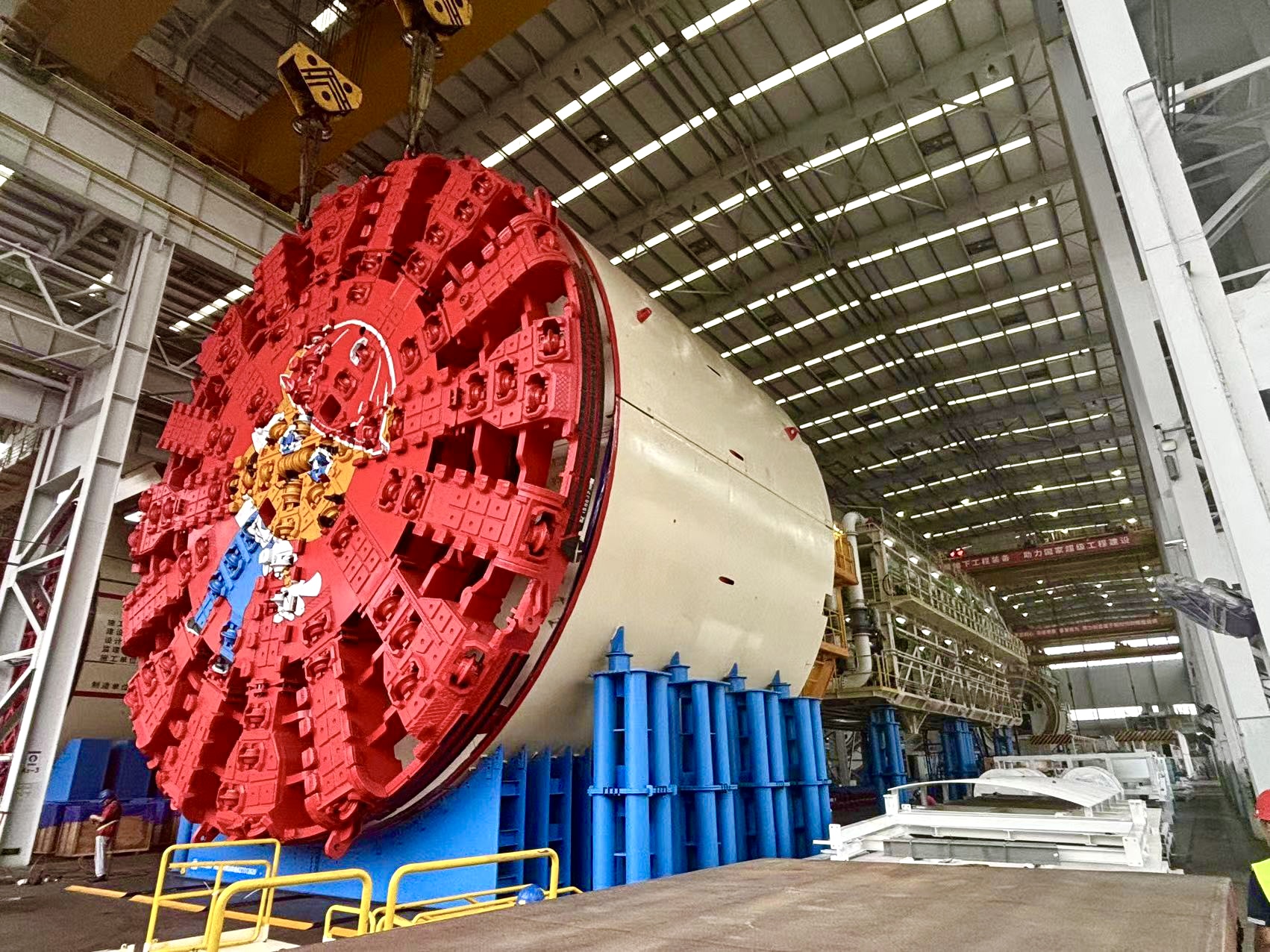 “盾构机启动现场组装只是一个开始,我们会持续跟进明挖段施工进度以及盾构机后续配套设备的结构特点,动态优化调整组装实施方案,高质量完成后续刀盘组焊、后吊装口后配套台车组装、盾构井盾体吊装下井等工作。”广州工程建设指挥部广南段落指副指挥长梁耀新介绍。
