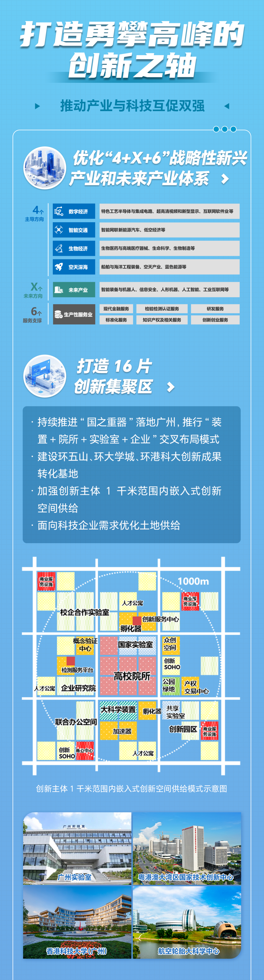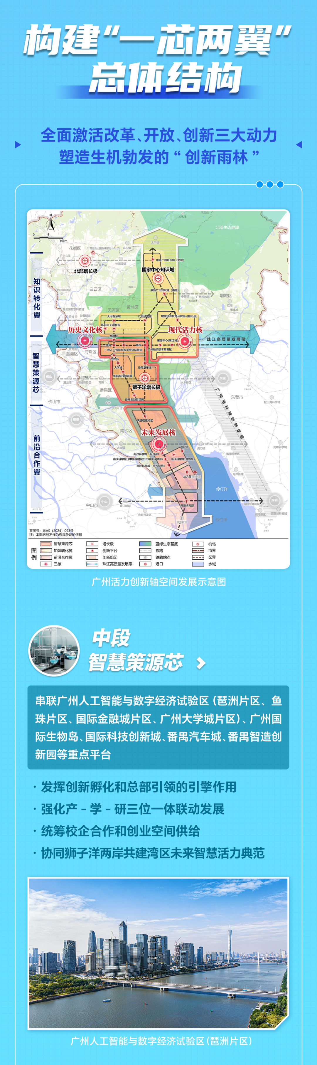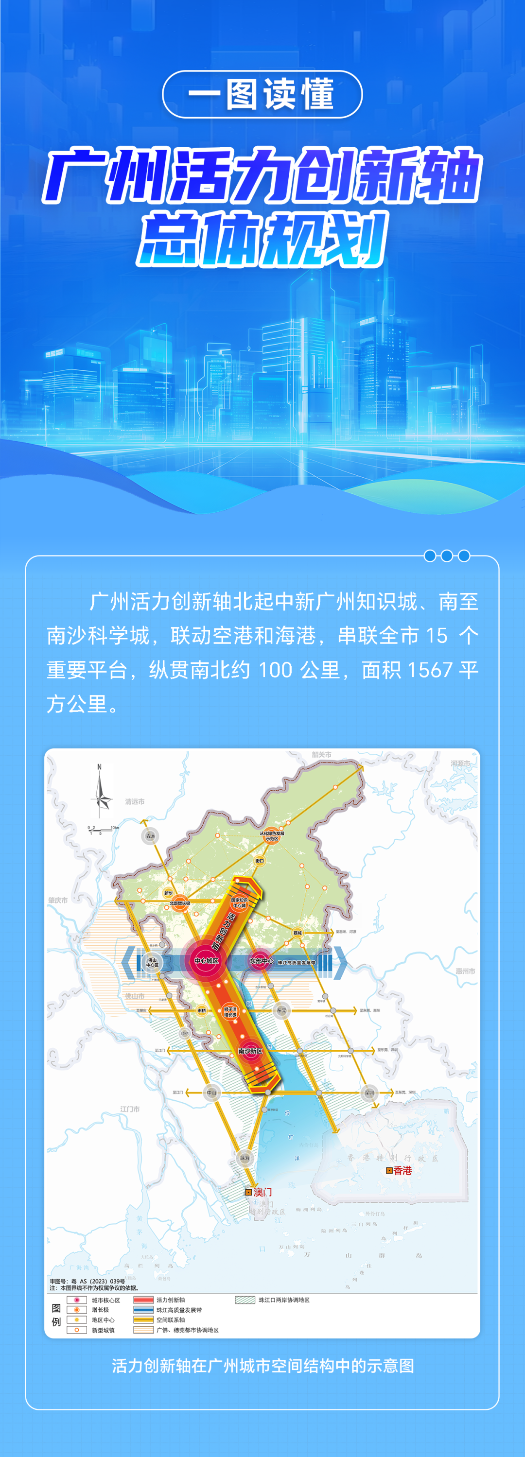 为落实《广州市国土空间总体规划(2021-2035年)》“国际科技创新中心重要承载地”的核心功能定位,以及“一带一轴、三核四极”的城市空间结构,广州市规划和自然资源局组织编制了《广州活力创新轴总体规划》,支撑广州加快凝聚新质生产力,塑造经济发展新动能、新优势、新范式,引领粤港澳大湾区创新链、产业链、资金链、人才链“四链”深度融合。