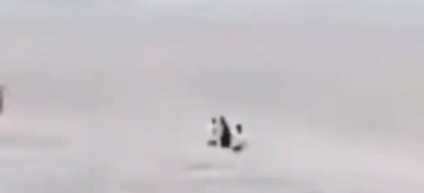 (网传画面中,几名学生在海潮中手足无措,此时,海水已没过膝盖。)