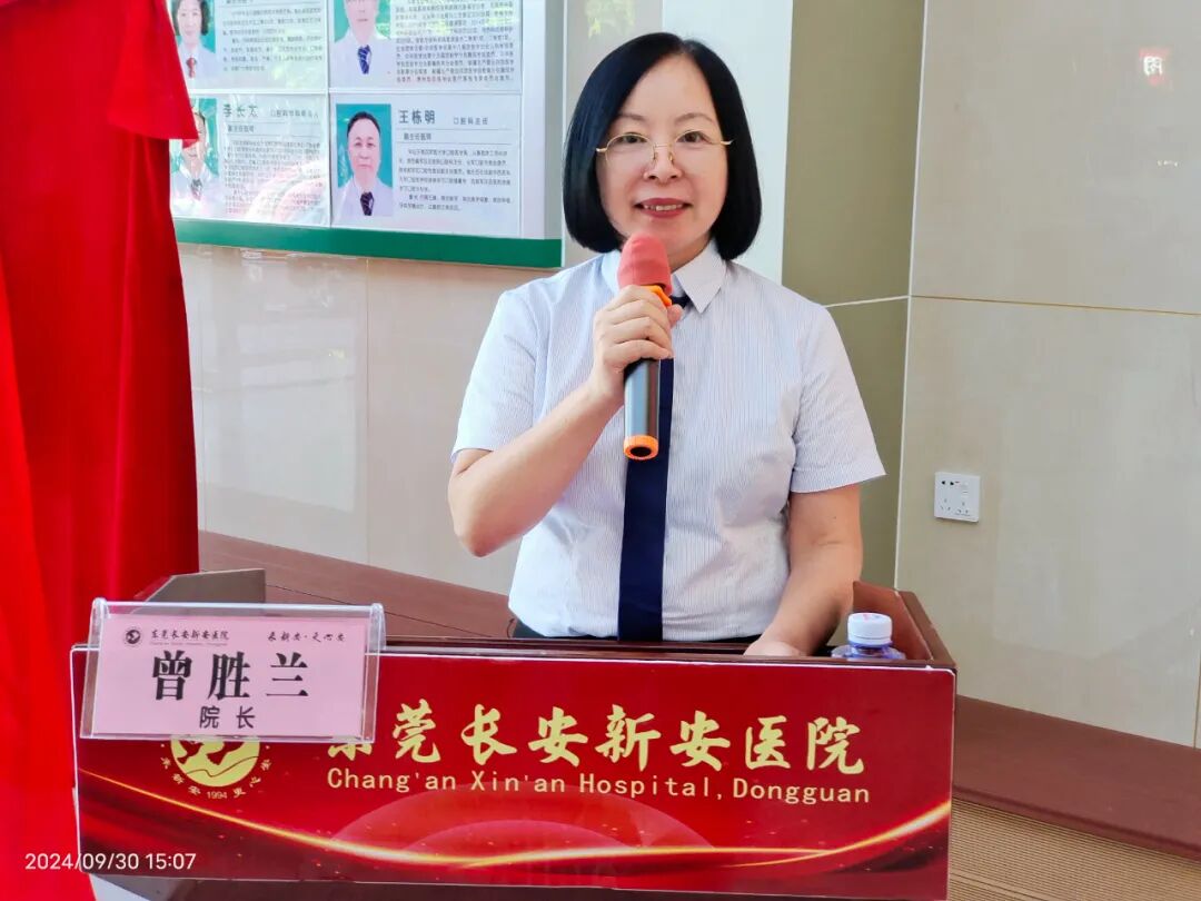 东莞长安新安医院曾胜兰院长首先对东莞市厚街医院代表的到来表示热烈欢迎,并简要介绍了医联体合作的重要意义和深远影响。她表示,此次医联体签约揭牌仪式的成功举办,标志着两家医院将进入更长远、更深入的合作模式,双方明确将在技术帮扶、双向转诊、专科建设、人才培养、医院管理六大方面展开深度合作,必将全面提升新安医院医疗技术、人才培养、科研教学和学科建设等方面的工作。
