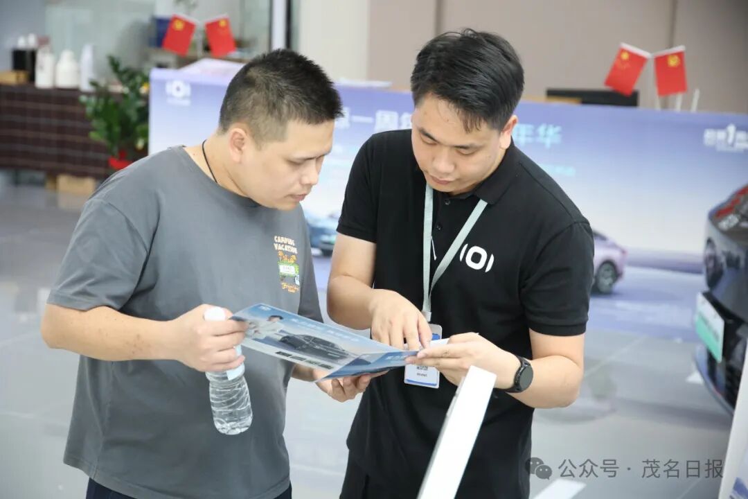工作人员为消费者解读车型配置及补贴政策。茂名日报社全媒体记者 刘付思明 摄