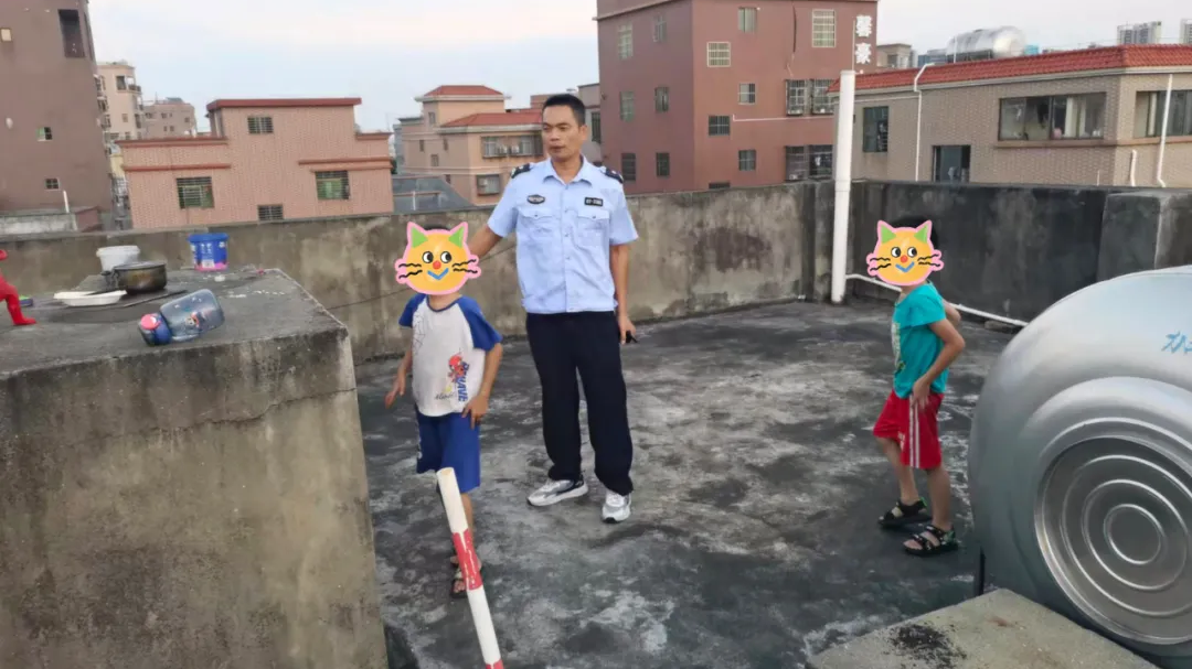 关键时刻,该市民立刻拍下视频,并通过中堂镇江南社区的微信群第一时间联系了江南社区警务室。警务室工作人员迅速行动,赶到现场,成功将小孩带下楼顶,制止了他们的危险行为。