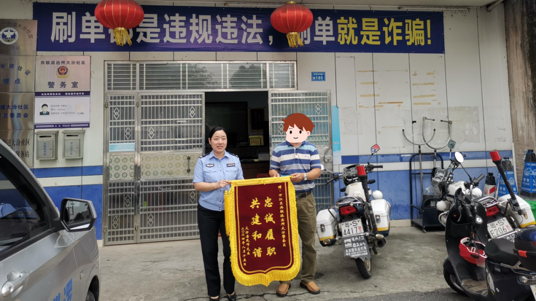 事情解决后,邓先生利用办业务的机会来到万江分局,送出一面印有“忠诚履职 和谐共建”锦旗。以此表达对警务人员忠诚为民、高效服务的深深敬意,来表达自己最真挚的感谢!