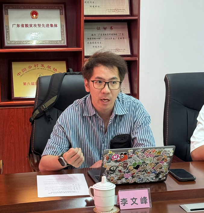 李文峰总监介绍了潮丰文化公司组织架构、业务布局、产品开发情况,特别是近年来,潮丰文化公司依托江门深厚的历史底蕴和丰富的文化艺术资源,成功推出了一系列独具江门特色的文创产品,为促进当地非遗文化“走出去”,吸引更多游客“走进来”,盘活乡村经济做出了积极有益的实践探索。