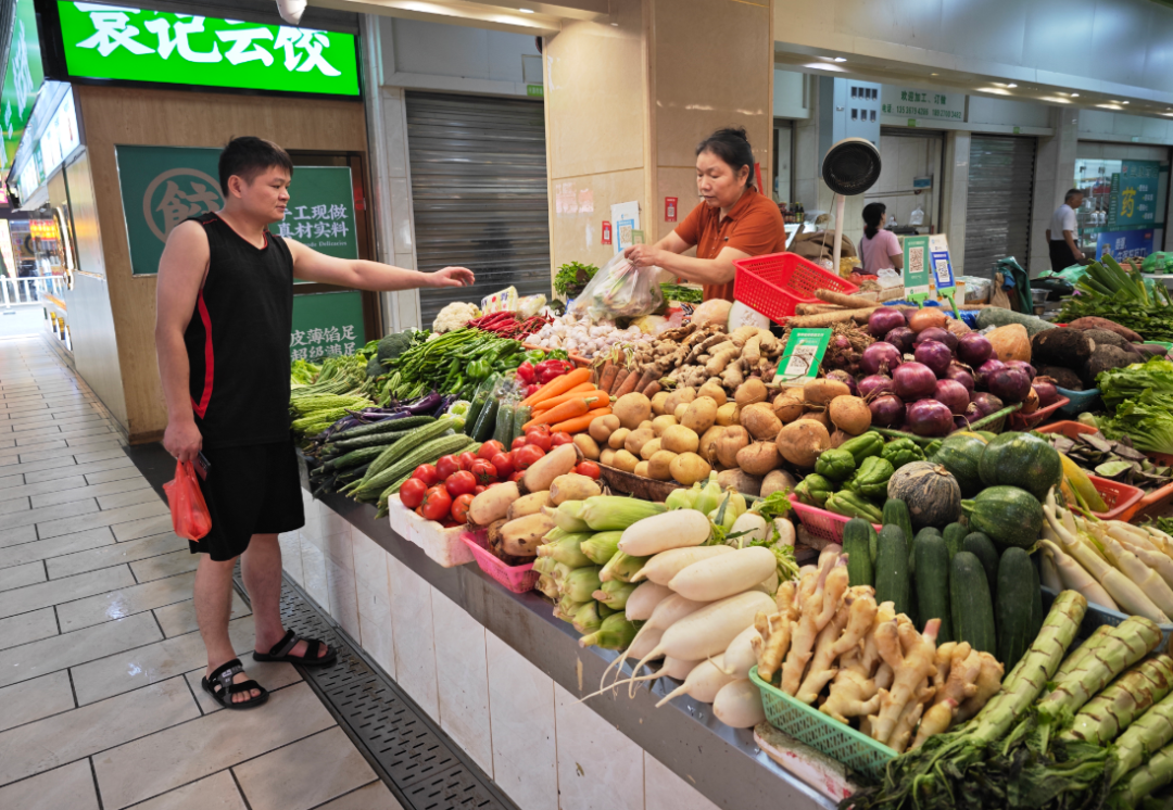 近日早晨,位于河源市区的兴源市场迎来前来买菜的市民。“现在的兴源市场干净整洁,商品新鲜,可以放心购买。”在附近居住的市民刘沁一如既往地走进市场挑选商品,已经在这里买了十多年菜的她,见证了兴源市场从过去的脏乱差到如今干净整洁的变化过程。