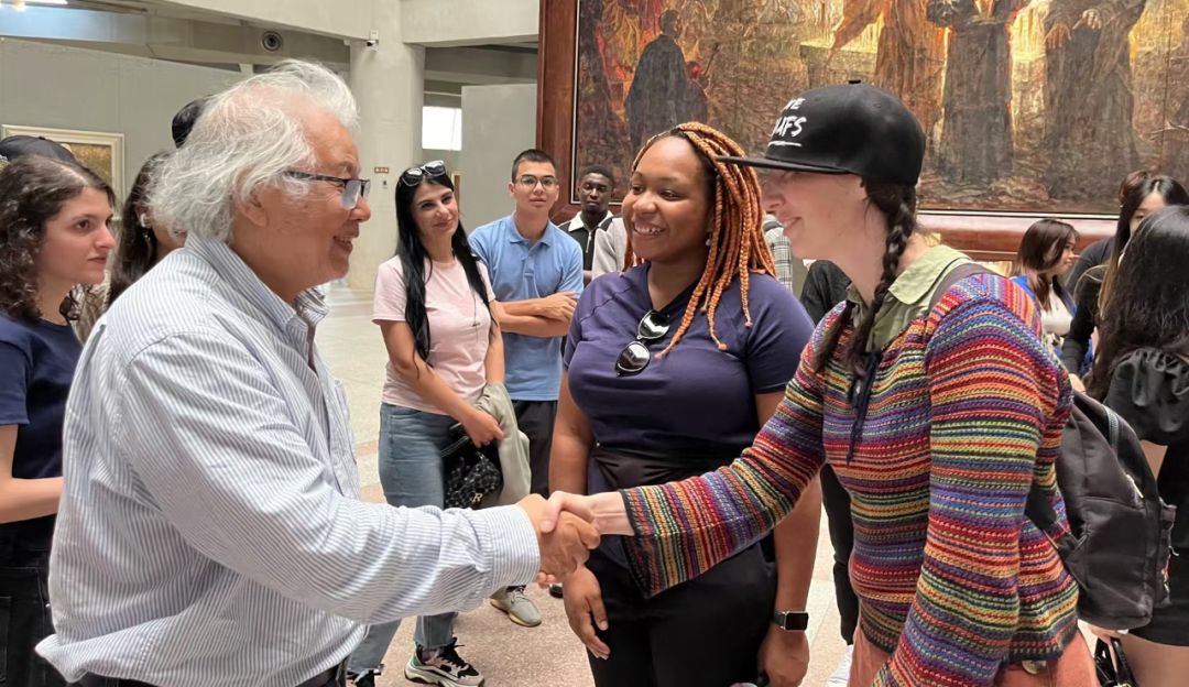 涂志伟先生曾多次率领美国油画家到韶关翁源县采风,把当地美丽的山水和客家民居民俗,通过画笔介绍给大洋彼岸的人民,架起中外人文交流的桥梁。无独有偶,与Agnes同为绘画爱好者的美国留学生Kendra也在这次旅程中,利用随身携带的画笔认真纪录了韶关的花鸟草木。她还在参观美术馆期间与涂志伟先生进行了热情的交谈。“涂先生的作品非常触动我的心弦,能见到他本人我感到很惊喜也很荣幸!”