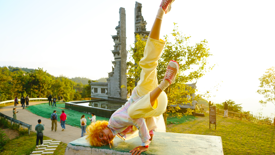 “九山半水半分田”——位于广东中部以北的韶关市新丰县是典型的山区县,冬无严寒、夏无酷暑,山丘起伏、郁郁葱葱,是春赏山花、夏弄清风、秋观枫叶、冬踏冰雪的绝佳去处。新丰县青云山上的岭南红叶世界是此行的第一站,这里清凉舒爽的山风一扫广东夏末的炎热,让人顿觉神清气爽、心旷神怡。大家登上山巅之时恰逢日落,放眼望去,群山绵延不绝、云雾缭绕,玫瑰色的云彩层层叠叠、变幻多端,一排排枫树也被初秋染上了红晕,好一副如梦似幻的仙境画卷。走在观日坪上的“天空之境”,国际留学生们一边感叹中国山河之美,一边不停地按下快门记录这难得的风光,巴西留学生Agnes还在夕阳下跳起了霹雳舞。