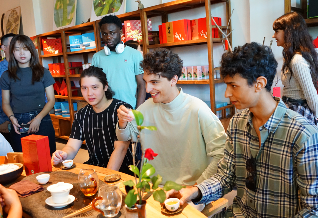 印度留学生Gandhrav和伊朗留学生Daliri、Donya都来自世界著名的茶产国,“在我们的国家,人们几乎每天都喝茶。”而在体验中国茶后,他们都纷纷表示,“非常喜欢,希望能带一些中国茶给亲朋好友品尝。”Daliri还向记者分享道,“我祖母家就有一片小茶园,我从小就与茶相伴成长。不同的茶叶品种、采摘和生产方式、冲泡方式都能让人有不同的品鉴体验,我很喜欢中国红茶。”来自格鲁吉亚的Kevkhishvili表示,这是他第一次来到韶关、第一次体验中国茶文化、第一次了解茶产业的运作和发展。这段难忘的经历不仅让他增长了见闻,还让他牢牢记住了韶关这个美丽的城市,并希望能够更深入地了解中国文化。