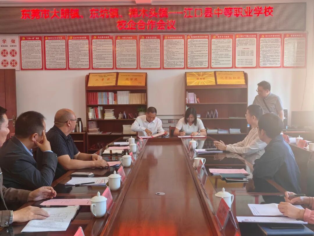 大朗组团一行实地走访江口县中等职业学校,并组织相关企业代表及学校代表开展校企合作洽谈会。大朗、东坑、樟木头的企业代表也纷纷发言,分享了企业的发展现状、人才需求及合作愿景。在自由交流环节,校企双方就具体合作项目进行了深入洽谈,包括共建实习实训基地、联合开展专业项目、开设企业订制班等。多家企业现场表达了强烈的合作意愿,并与相关学院达成初步合作意向。
