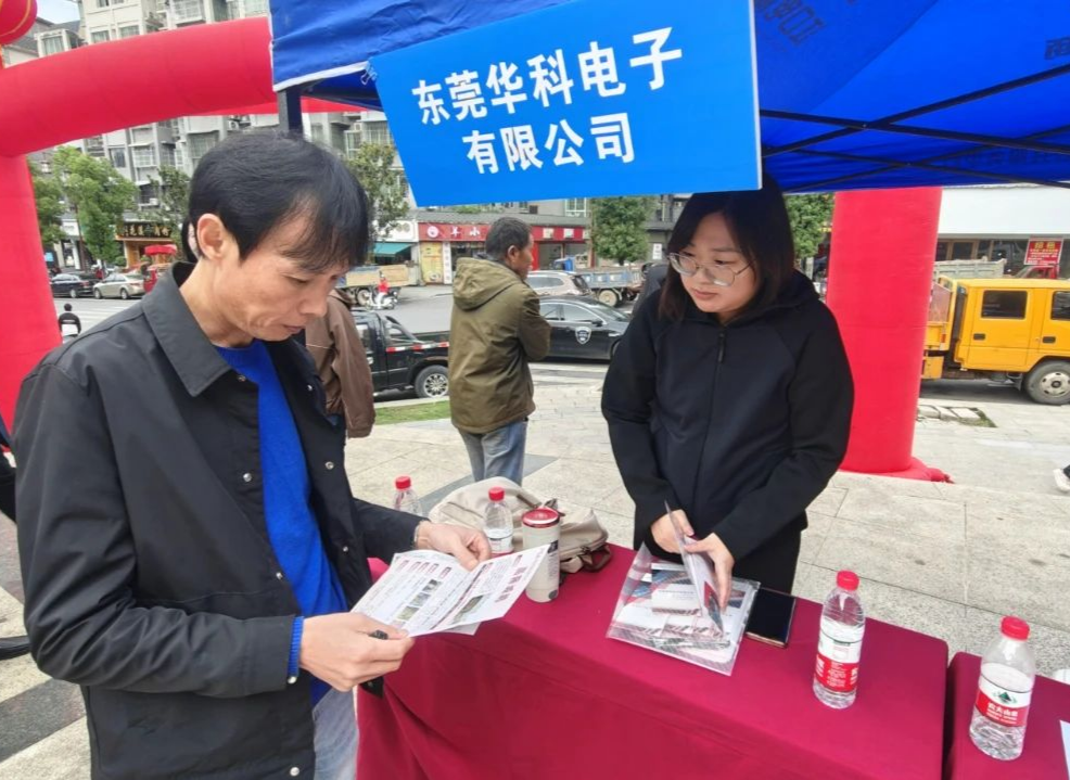 大朗组团(大朗镇、东坑镇、樟木头镇)在江口县双江街道龙井社区月坡公园广场举办2024年大朗组团—江口县东西部劳务协作对接现场招聘会。本次招聘会,大朗组团共组织12家东莞企业进场招聘,收集约50家东莞企业招聘信息现场发布,招聘岗位2000余个,岗位包括机电维修工、保安、保洁、销售、服务员、操作工、包装工、技术工等20余个工种,吸引当地返乡劳动力、应往届高校毕业生、脱贫户、易地搬迁户等求职者到场,共计发放300余份招聘资料。