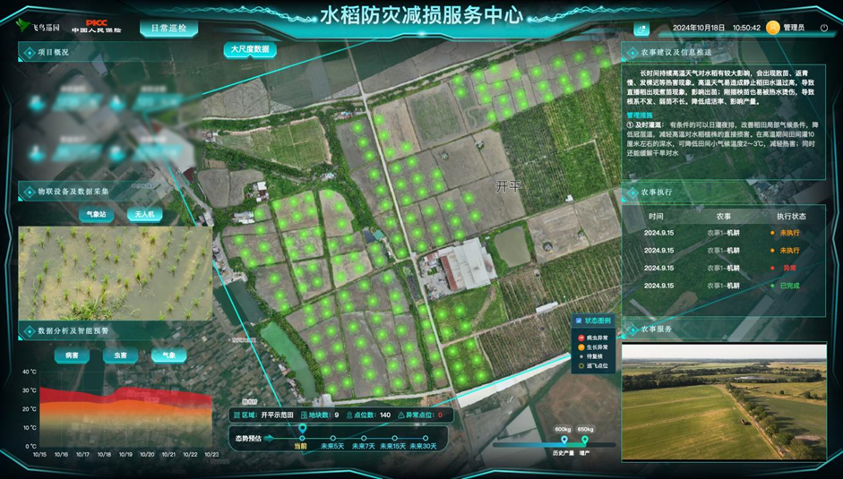 利用平台监测到的灾害数据,向种植企业和农户提供涵盖水稻育苗、播种、飞防、抢收烘干、撂荒复耕等综合防灾减损服务。