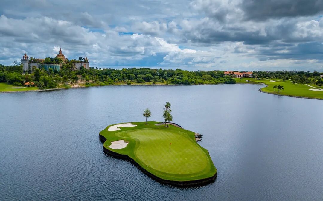 泰国Amata Spring球场是一个享有盛誉的高尔夫球场,位于泰国,被誉为泰国最负盛名的高尔夫球场之一。该球场于2005年开业,由Lee Schmidt和Brian Currie设计,其特点包括许多水障碍和沙坑,整个球场地势平坦,但障碍物布置得当,为球手提供了挑战。球场的最大亮点是第17洞--浮岛果岭,这是一个极具挑战性的球洞,要求球手将球打到小浮岛上,之后必须乘船穿过果岭,是一种独特的体验。此外,球场还提供了练习场供球手免费使用,进行推杆和切杆的练习。Amata Spring球场不仅因其美丽的自然环境和战略性的球场设计而受到赞誉,还因为其一流的服务和设施,包括两个餐厅提供多样化的餐饮选择,使得它成为游客和当地居民喜爱的高尔夫体验地点。此外,该球场还举办过美国高尔夫锦标赛,泰格-伍兹曾在此夺冠,进一步提升了其国际知名度。麦克罗伊等其他著名球员也参加了泰国锦标赛,使得该球场享誉全球。因此,无论是对于初学者还是高级球手来说,Amata Spring球场都是一个值得尝试的地方。
