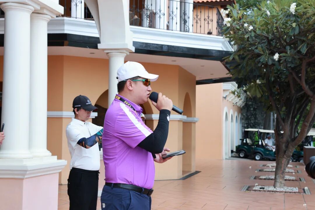 东莞桂商高球队队长李大明致辞。李队长表示很开心能够来到享有盛誉的泰国Amata Spring高尔夫球场,不仅能够欣赏到如画风景,还可以与众多优秀的高尔夫球爱好者切磋球技。锻炼身体,陶冶心性之余,还能够结交到更多优秀的企业家。最后祝大家取得心仪成绩,享受这次美好的旅途。