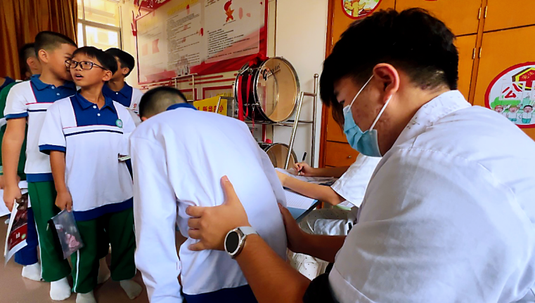 记者在筛查现场看到,学生有序排队,依次进行筛查。医务人员耐心询问学生身体健康状况、生活和学习习惯,通过眼观、手触、仪器测量等方式,引导学生做出规定动作,观察每一位学生是否存在脊柱侧弯现象,为其进行健康评估,做好记录、登记成册。同时,为学生普及相关健康知识,叮嘱学生日常注意事项,给予健康指导,引导学生养成健康生活、学习习惯。