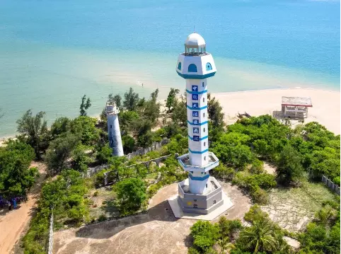 这个岬角,用历史的厚重与岁月的深沉,在中国大陆版图的最南端上支起一丝带有几分神秘的弧线——“合水线”。合水线是北部湾和琼州海峡的交汇处,两个海区的海水在此接吻相拥,情意缠绵,在这里,你能同时与两片大海握手。