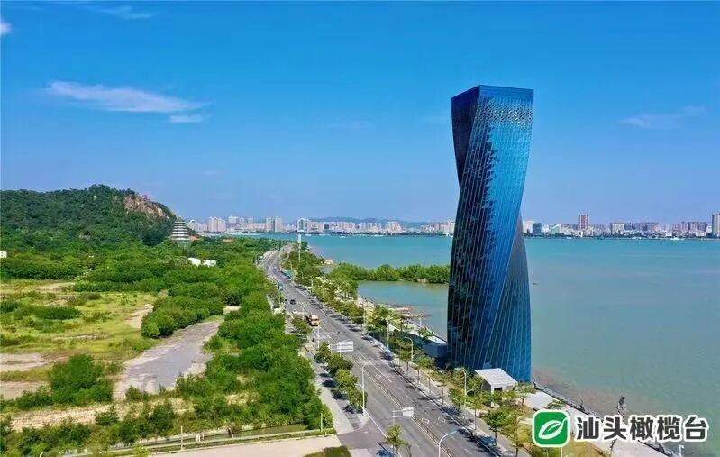 汕头内海湾南北岸各设一座风塔,作为苏埃海湾隧道的“呼吸系统”,塔内设有风机,承担通风功能。南北两岸风塔遥相呼应,以山、海、城为依托,打造成为汕头内海湾的地标性建筑。位于濠江区南滨路的南岸风塔,以“海丝”门户为主题,采用现代形构手法设计,外观上通过对玻璃形体的扭转、变形,呈现柔美波纹的意境,成为市民游客一处网红打卡点。