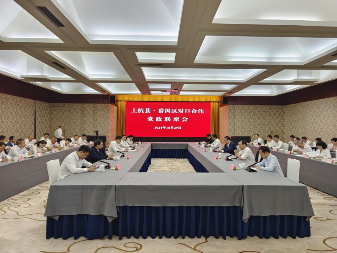 10月29日,广州市番禺区委书记黄彪率番禺区党政代表团赴福建省龙岩市上杭县,召开上杭县·番禺区对口合作党政联席会议,深入对接老区苏区振兴联动发展工作,深入探讨区域协调发展和城乡融合发展联动互促。