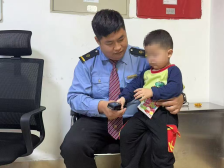 值班员李德威听闻消息后,立即赶到站台,并将小孩带回值班室照看着,一不留神小朋友又跑出值班室。于是李德威拿出手机找了些动画片,又拿来一些零食、玩具,小朋友这才安静了下来。