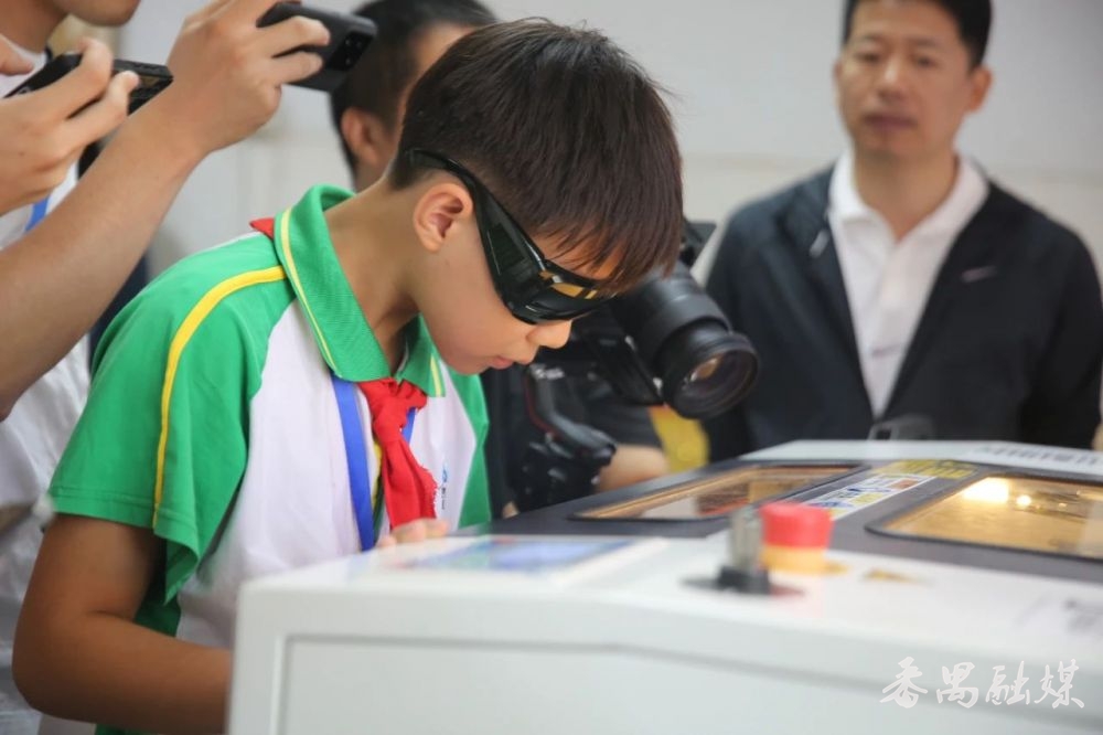 学生进行激光切割