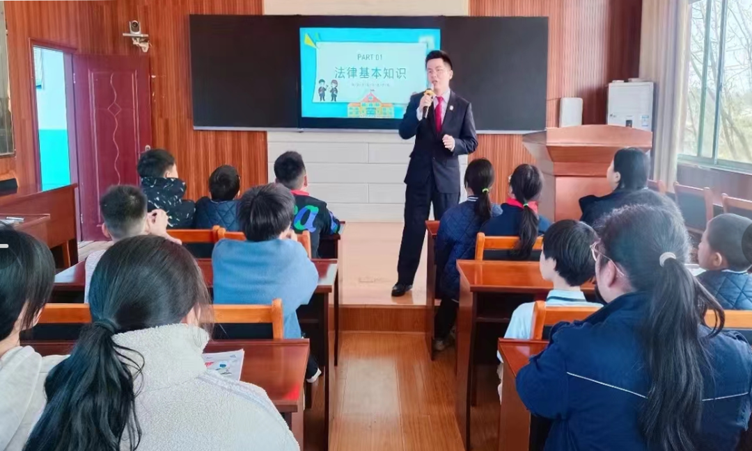 图为近日湖北省赤壁市人民法院神山人民法庭法官程定飞进校园为学生普法。朱国丹 摄