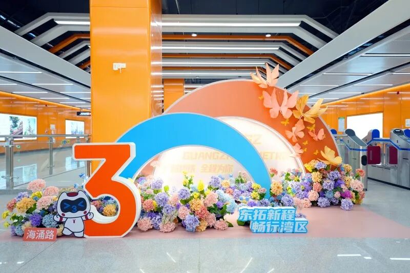 开通当天,广州地铁在海傍站、傍江站、石碁南站、海涌路站四个新线车站设置精美的花艺造景,14:00开始还有可爱的广州地铁YOYO街访人偶以及精彩的广东非遗传承醒狮艺术表演,不定时在车站表演、与乘客互动合影,乘客还可在此期间到车站参加打卡集章活动,感受新线面貌和开通氛围。