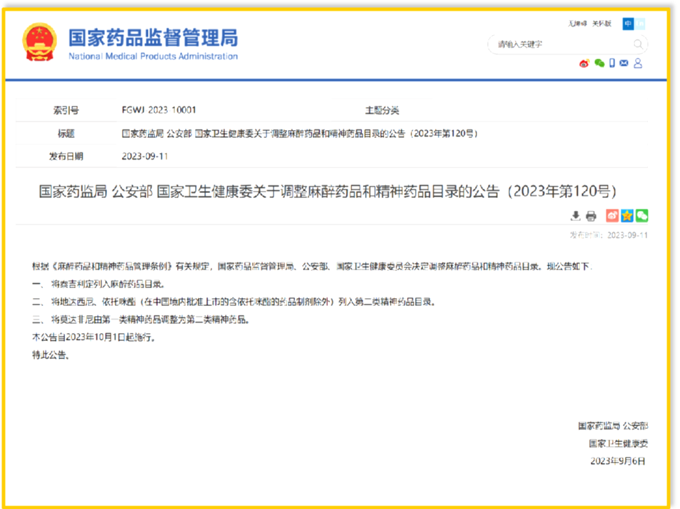 依托咪酯已正式列管!
