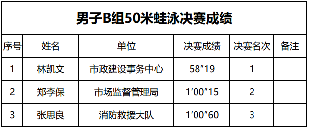 本次比赛赛制按照年龄分段划分男子自由泳组、男子蛙泳组、女子蛙泳组,充分满足了不同选手的需求。
