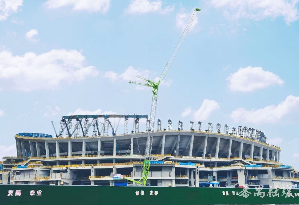 日前,从番禺区兴业大道西谢村段经过,一栋气势雄伟、设计新颖、外表呈曲线的建筑物展现在眼前。这就是正在建设当中的广州足球公园的足球场馆,现已初露芳容。据悉,足球场馆正在进行穹顶及外立面幕墙安装施工,预计将于2025年年底建成并投入运营。