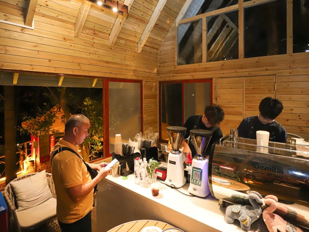 ▲ 市民在丛林咖啡木屋里购买高桂啡。陈彦成 摄