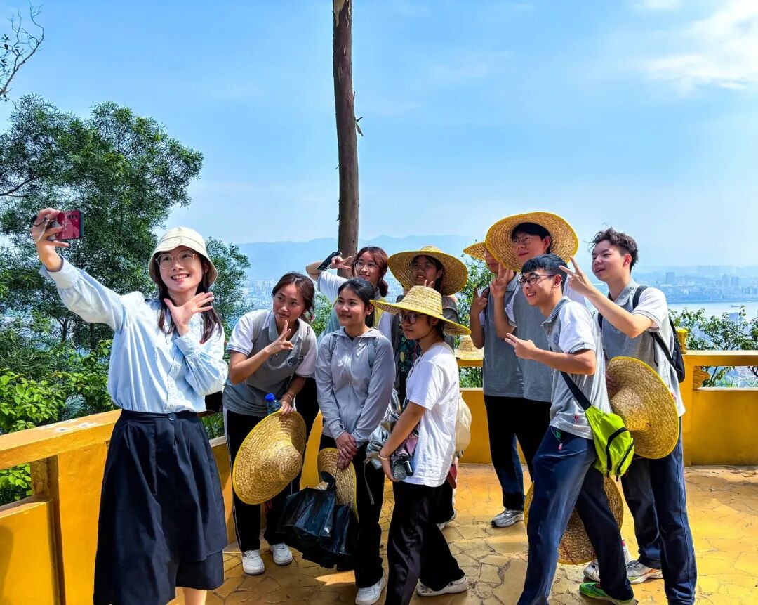 ▲ 研学游的学生在金象亭合照留影。 钟正谦 摄