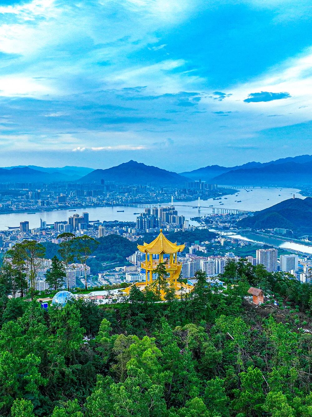 位于金象山森林公园山顶处的爱心观景平台,备受游客喜爱。眼前是是一江两岸、城市繁华,身后是浓绿丛林、万物生息,独一无二的景观让人流连忘返。