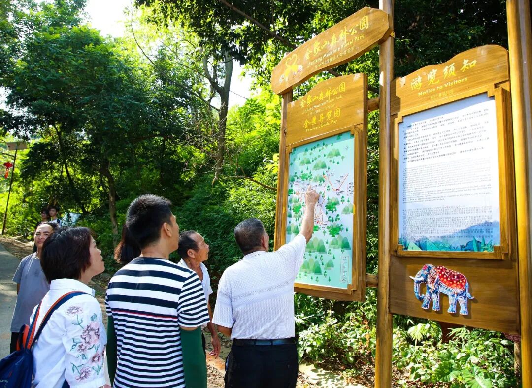 金象山森林公园通过实施森林质量精准提升、绿美保护地提升、全民爱绿植绿护绿行动等措施,大大改善提升了象山生态环境,并新增了观景平台、金象亭、吉象亭、丛林咖啡木屋、鹦鹉屋、阳光房等,连接起自然景观和人文景点,形成了独具特色的绿美生态廊道。