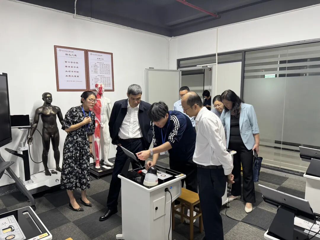 刘涛副局长在深圳市卫生健康委中医处处长赵曾艳,宝安区卫生健康局副局长陈桂红,宝安中医院(集团)党委书记、院长周鹏的陪同下先后到宝安中医院(集团)技能培训中心及上川社康站指导。
