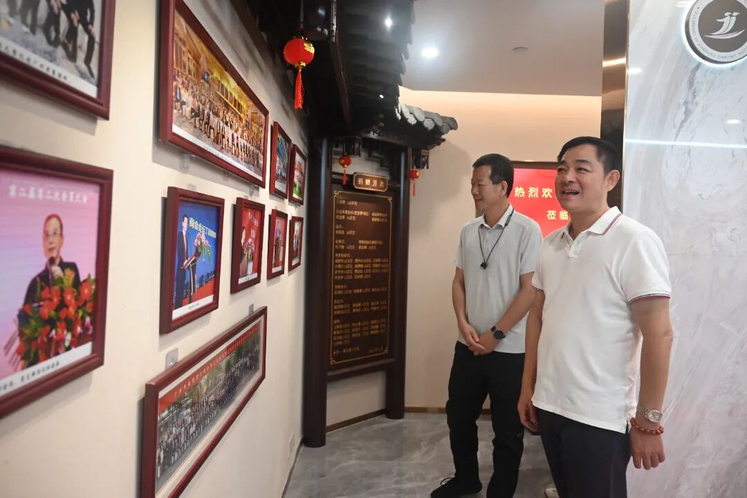 我会常务副会长兼秘书长黄志雄代表商会对诸位领导的到访表示热烈的欢迎。随后陪同领导们参观了商会文化墙,并详细介绍了商会的发展历程、会员的风采、商会工作发展情况等。