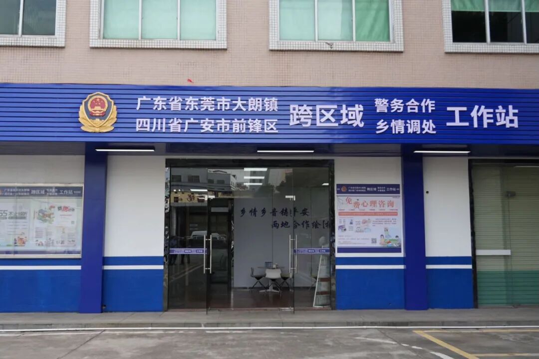 2019年开始,东莞大朗和广安前锋两地公安业务交集较多、频繁联动,两地公安开始探索搭建警务合作平台;2022年7月,巷尾社区“广兴派出所驻大朗乡情警务站”揭牌,成为东莞市首个“乡情警务”站;2022年12月,巷头社区同步建设跨区域警务合作工作站,为警务助理开展工作提供场地。“乡情警务”有效拉近了流动人口和社会治理之间的距离,拓宽警民沟通渠道,在普法宣传、动态掌握等基层社会治理方面也发挥了积极作用。