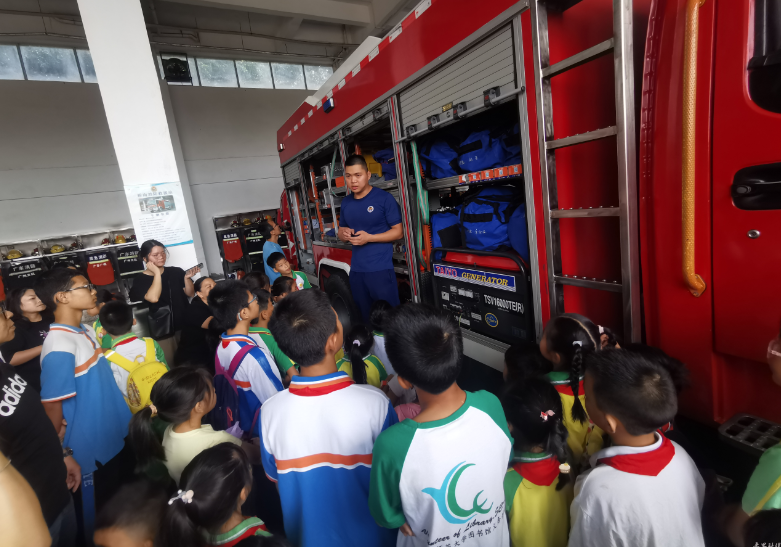 参观消防站,突遇真火警报警。当天上午,番禺区青年志愿者协会沙湾街青少年服务总队、江西省大余县流动党员番禺党支部、沙湾家校共建会部分成员单位的100多位学生走进番禺区消防救援大队桥南街消防救援站,近距离参观消防器材设备,学习消防安全知识,探索“神秘”的消防安全装备,树立消防安全意识。